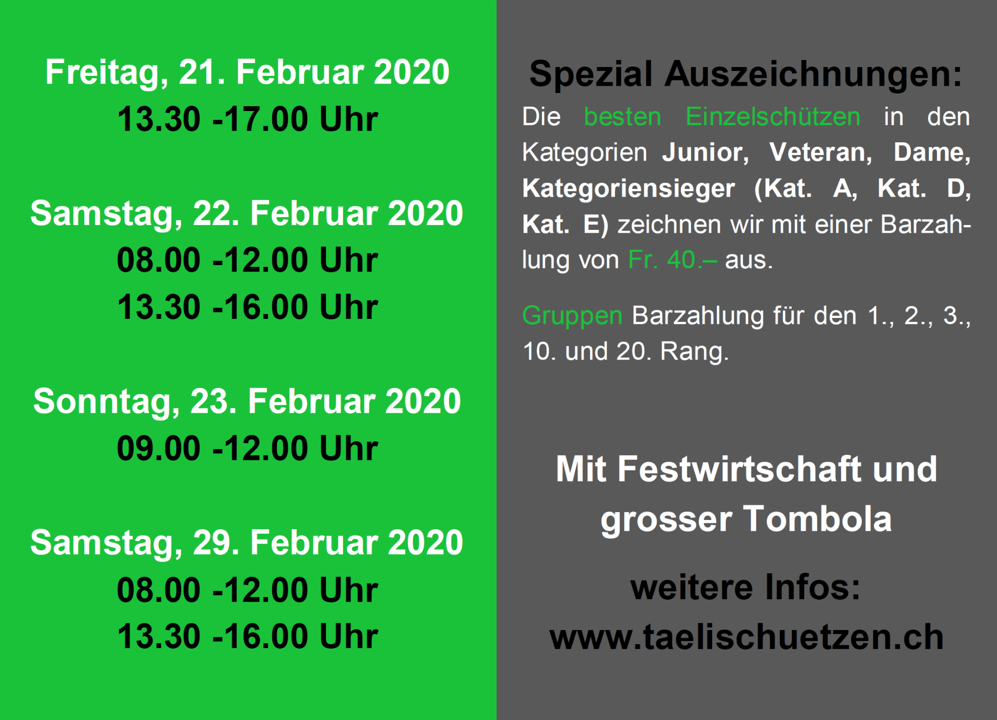Wir danken allen 714 Schützinnen und Schützen für den esuch in Arbon-Roggwil. Mit einer Kranzquote von knapp 80% habt ihr gezeigt das auf dem Tälisberg gut geschossen werden kann.