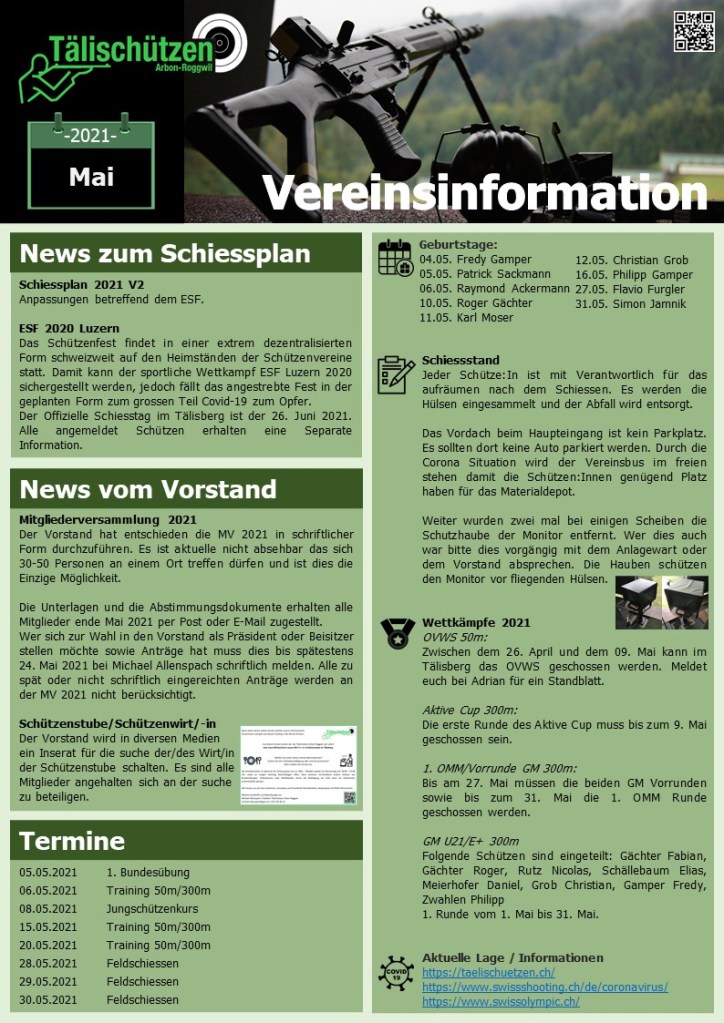 2. Mai 20212. Mai 2021Michael Allenspach Vereinsinformation 1. Mai 2021 Vereinsinformation 1. Mai 2021Herunterladen